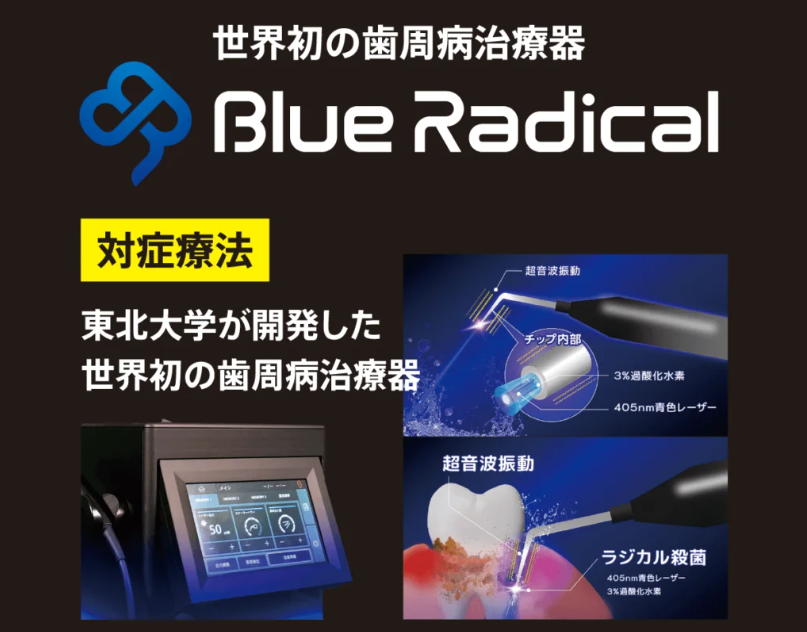 このようなお悩みをお持ちの方に、新しい歯周病治療の選択肢として注目されているのが「ブルーラジカル治療」です。