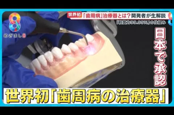 番組内では、東北大学が世界に先駆けて開発した、歯周病患者さんの新たな希望となる治療器として取り上げられています。